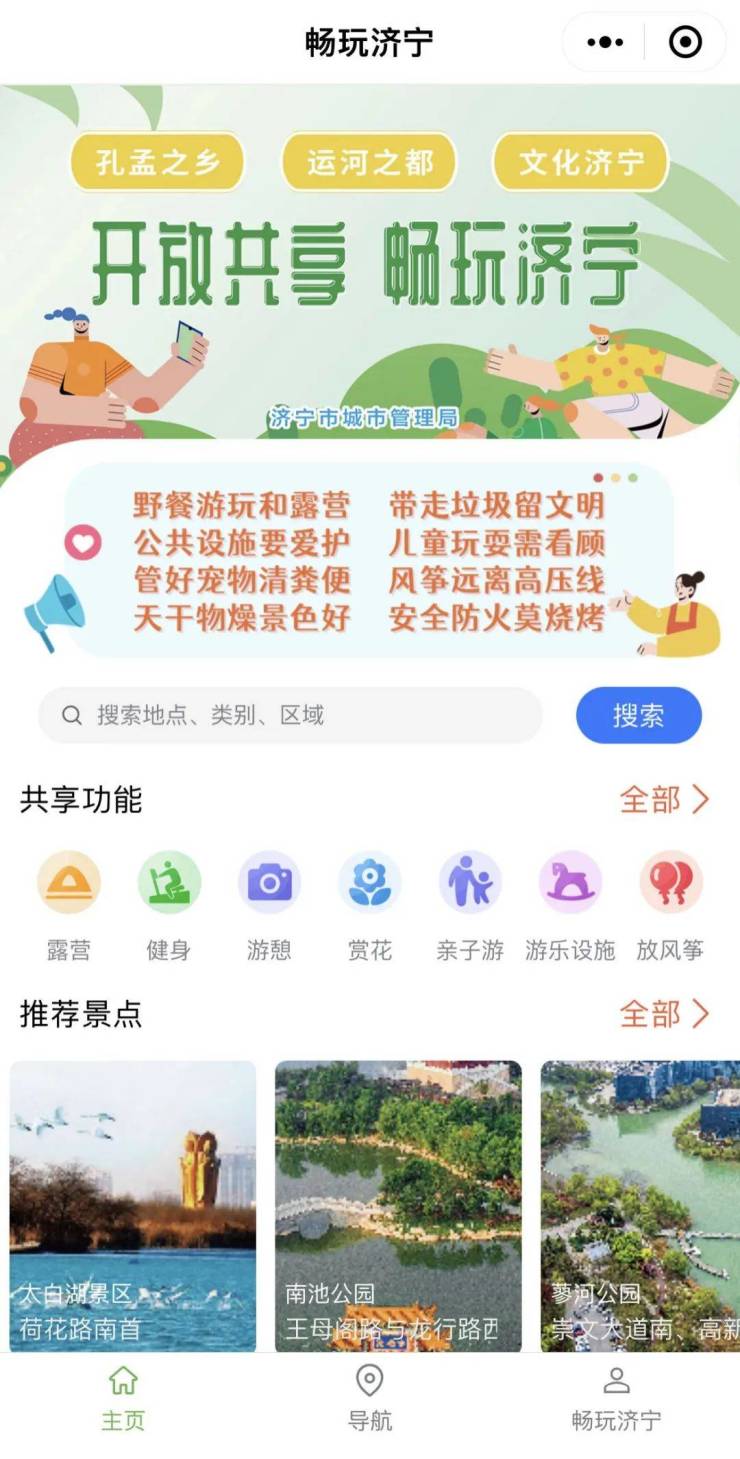 此外,济宁市城市管理还推出了出游小程序“畅玩济宁”,市民朋友可以直接在微信小程序上搜索即可。纳入市城管局“开放共享 畅玩济宁”小程序的开放公园共50处(其中位于任城区13处、兖州区15处、高新区14处、太白湖新区4处、经开区4处)。