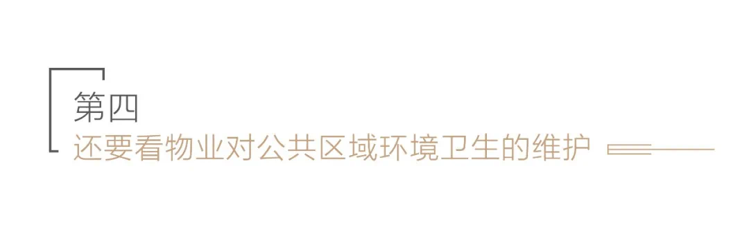 小区绿化是不是修剪得比较整齐,路面上能不能看见垃圾,人工河道里和水景里的水质是不是清洁、有没有异味、有没有蚊虫飞舞,更重要的是,在下雨下雪后,能不能及时清理路面,给业主们一个干净整洁的出行条件,这些都是一个好物业应该注意的。