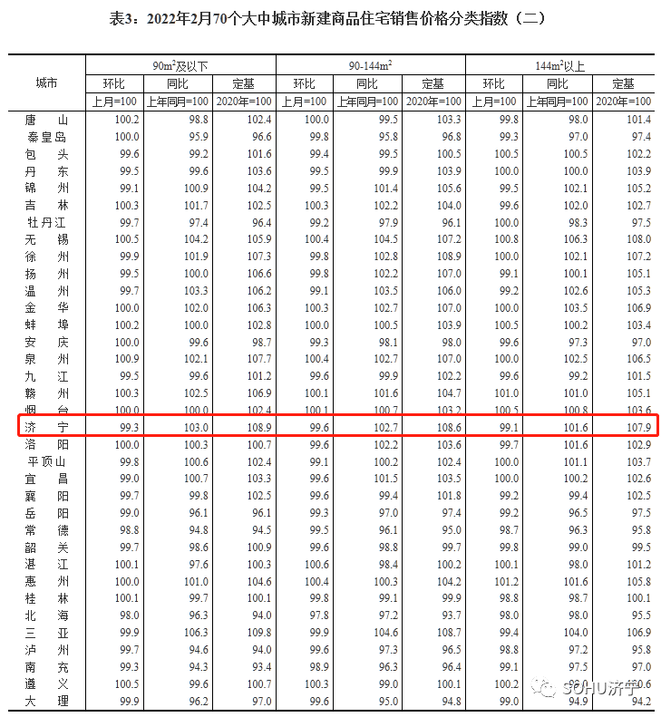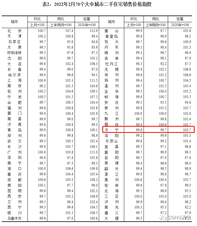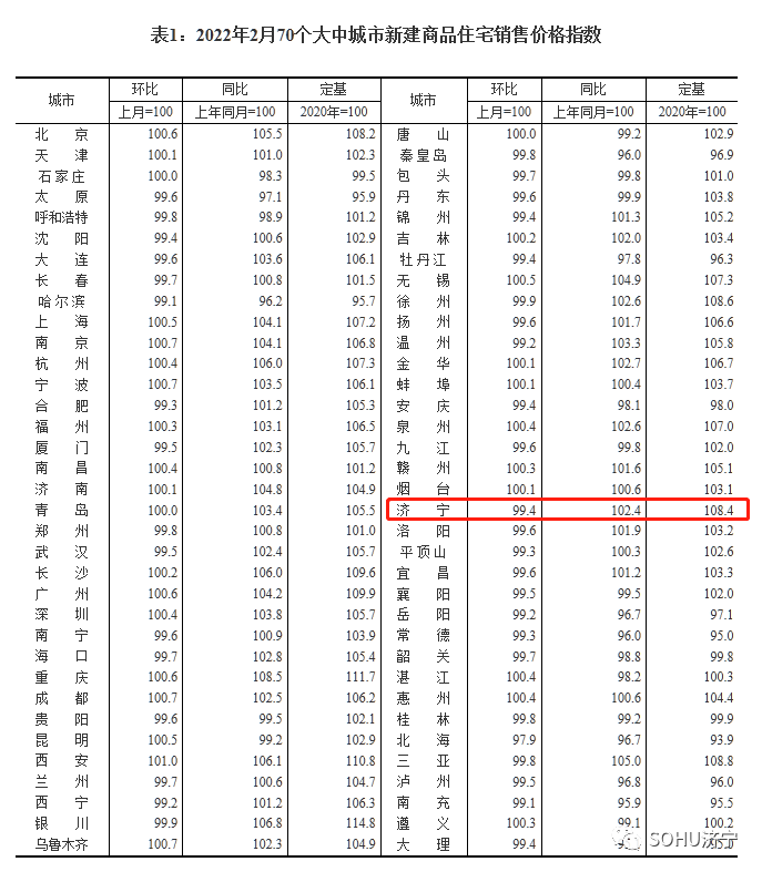 搜狐网济宁小编注意到:今早9点30分,国家统计局发布了2022年2月份70个大中城市商品住宅销售价格变动情况统计数据。2022年2月份济宁新建商品住宅销售价格环比降幅0.6个百分点。