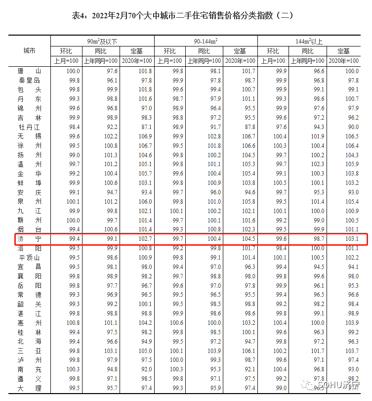 济宁2月份中户型更畅销新建商品住宅90-144㎡以下户型价格涨幅较大