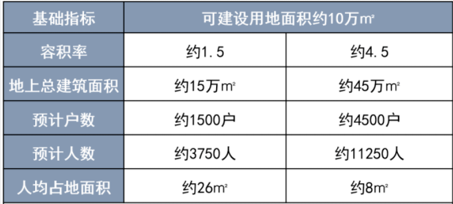 不要小瞧了这个指标,它直接影响到了我们的居住状态。以占地面积约10万㎡的社区为例,容积率分别为1.5和4.5的社区,同社区内居住人数差高达8000人,人均占地面积的差值更是多达20㎡,相当于主城区一套单间的面积。