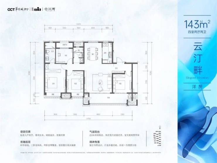 现在云水岸热抢的143㎡四房四厅两卫爆款户型,实现了约14.7米面宽,4开间朝南,最大化景观面和采光面。清风阳光随时光顾。约8米巨幕阳台,连通客厅与次卧,女主人瑜伽,男主人的茶道,爸爸妈妈向往的空中花园都能在此实现。逾18㎡米主卧套房更是惹人羡慕,独立卫浴,观景飘窗,专属衣帽间,把生活仪式感拉满!