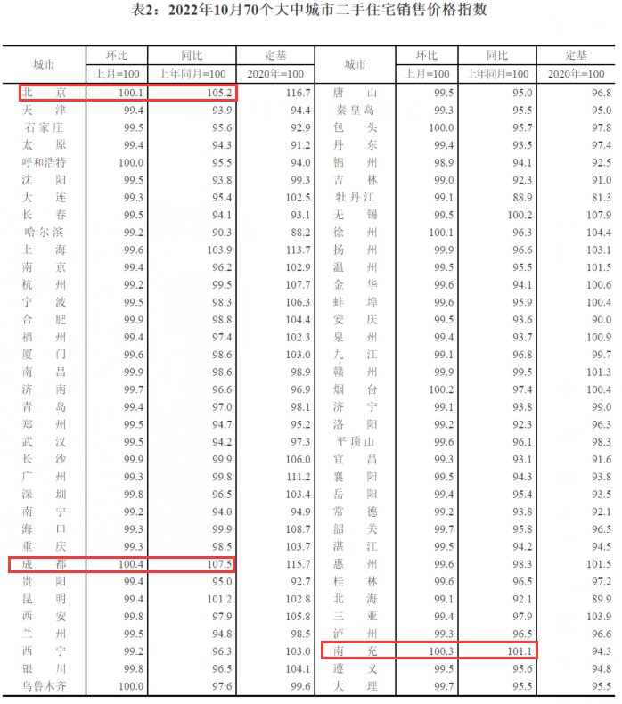 严跃进则表示,“从10月份环比和同比涨幅数据看,只有北京、成都和南充三个城市的二手房价格还在上涨。总体上说,10月份二手房价格上涨的城市数量是今年最少的,10月份市场压力其实是最大的。”