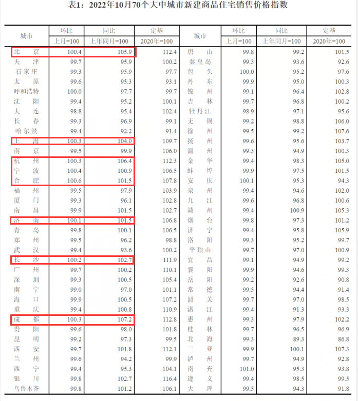 从新房价格环比和同比涨幅数据来看,10月份共有8个城市实现上涨,分别为北京、上海、杭州、宁波、合肥、济南、长沙和成都。