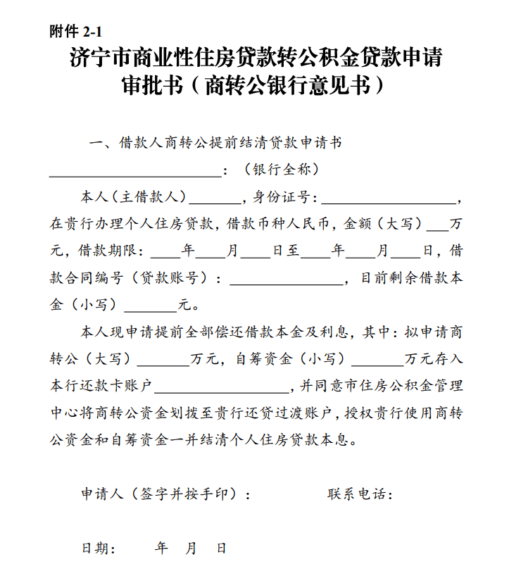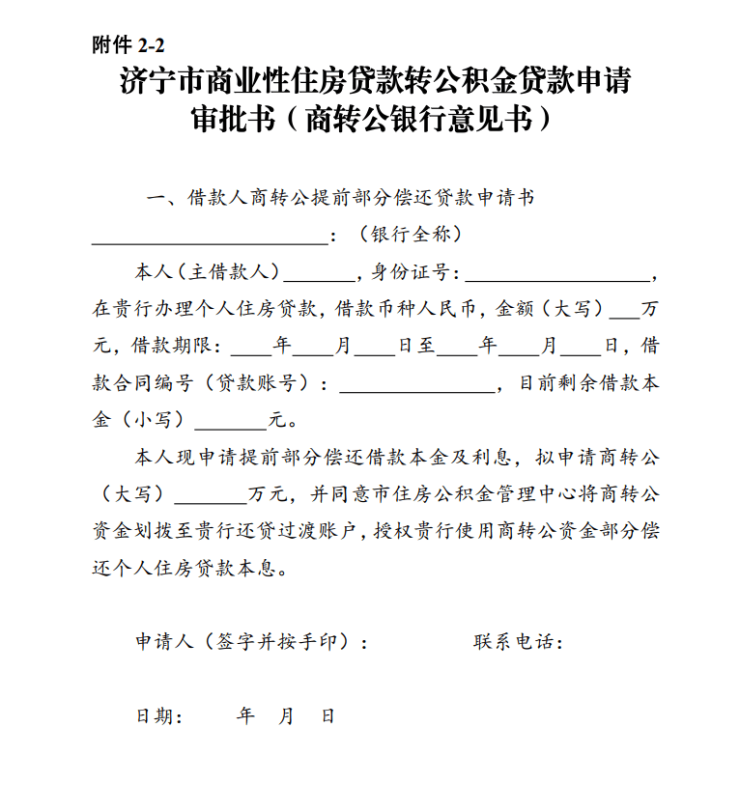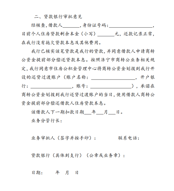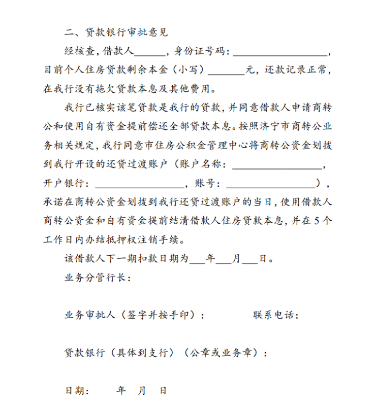 2-2.济宁市商业性住房贷款转公积金贷款申请审批书(商转公银行意见书)