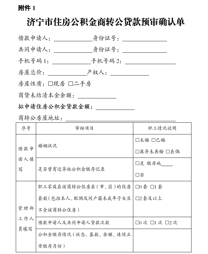 附件:1.济宁市住房公积金商转公贷款预审确认单