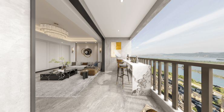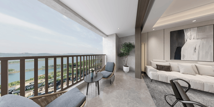 约7.3m面宽的光幕双阳台,直面景观,既满足生活洗衣收纳等基础功能,又畅享人生的酣畅风光。