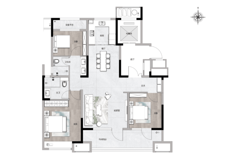 双阳台横厅布局,匹配居家生活多样化需求,莳花弄草、亲子时光、赏景品茗…无限延展家的生活意趣。
