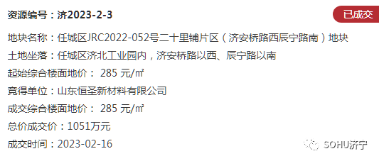 地块三:任城区JRC2022-052号二十里铺片区(济安桥路西辰宁路南)地块【山东恒圣新材料有限公司竞得】