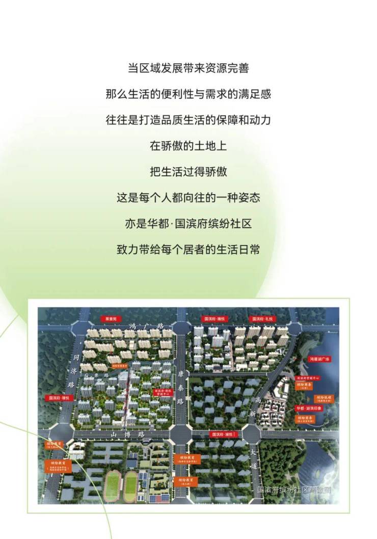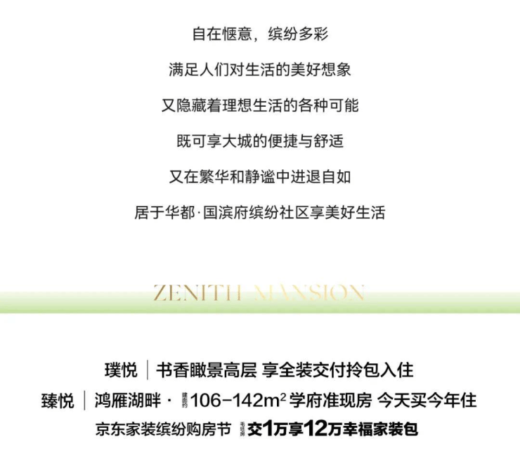 自在惬意,缤纷多彩。满足人们对生活的美好想象,又隐藏着理想生活的各种可能,既可享大城的便捷与舒适,又在繁华和静谧中进退自如,居于华都国滨府·璞悦享美好生活。