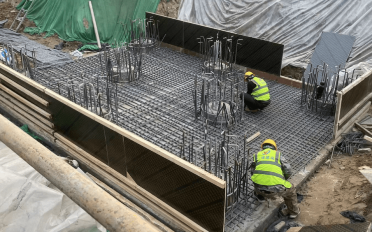 梁山港基础设施配套提升项目EPC总承包主要为建设61440㎡钢网架结构封闭条形仓,对梁山港3#堆场进行封闭及配套建设路网、给排水、供电照明、通信等设施的建设。目前,项目土建承台开挖已完成40个,累计完成42%,承台基坑土方开挖完成13250m³,土方回填完成3325m³,承台柱预绑扎完成15个,承台绑扎完成8个,并完成砼浇筑完成350m³。