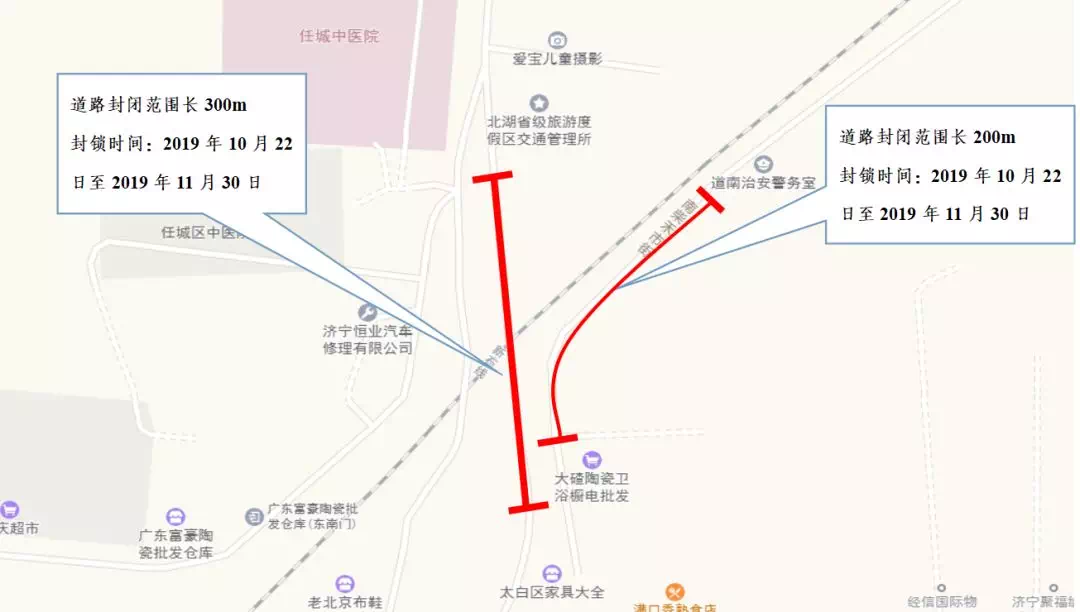 封闭区域 :荷花路铁路桥洞主路及人行辅道南、北方向各150m,陶瓷卫浴批发市场门口向北200m;