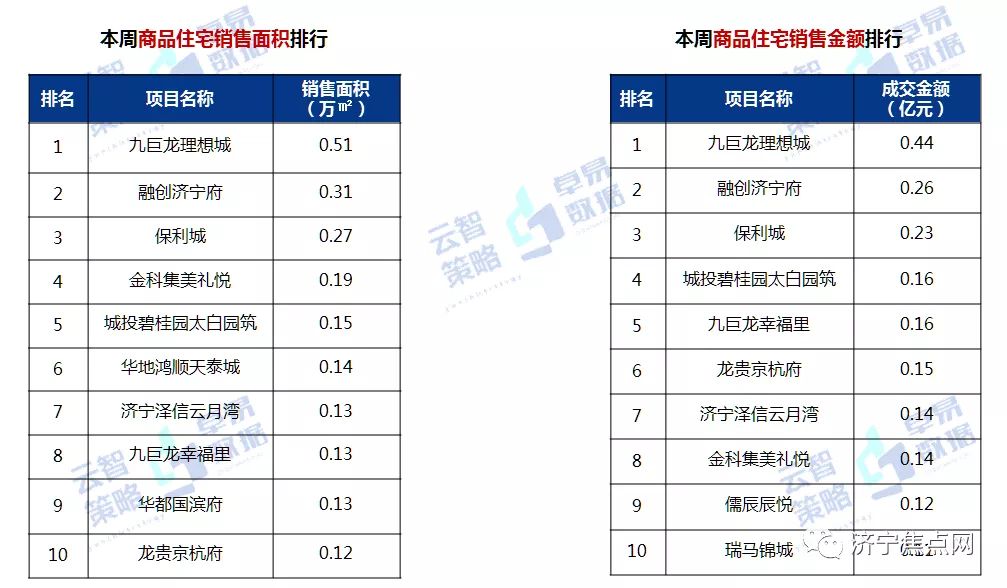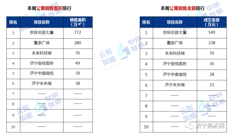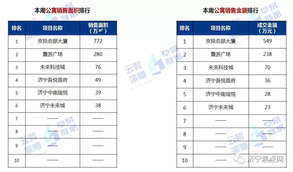 本周阳光河畔项目以销售面积215㎡,位居办公销售面积排行榜排名前列,济宁中南珑悦项目以销售金额115万元,位居办公销售金额排行榜排名前列。