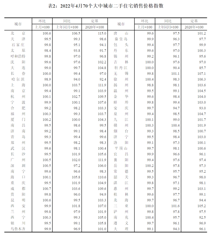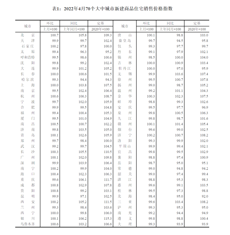 5月18日,国家统计局发布2022年4月70个大中城市商品住宅销售价格变动情况。4月70城新房价格出现2015年12月以来的首次同比下跌,二手房价格同比跌幅扩大,房价下跌预期增强。