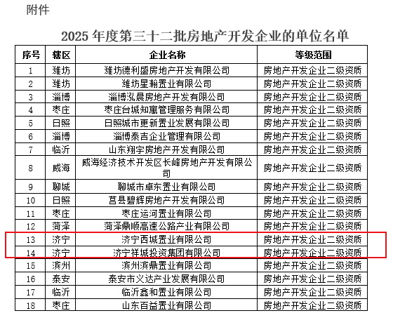 济宁2家!2025年度第三十二批房地产开发企业资质名单发布