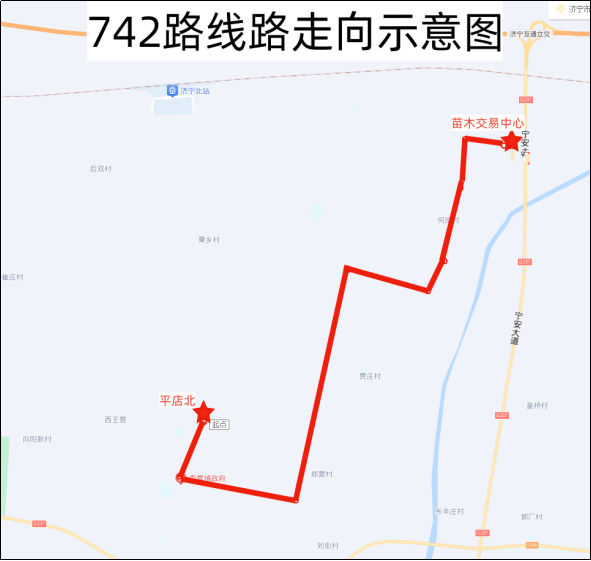 途经站点:平店北—李营小学—济阳大道孙营路—孙营路—郑营村—贾庄村—汪庄村—何岗村—苗木交易中心