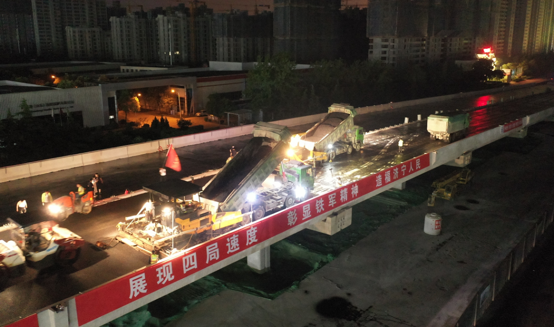 自3月3日开工以来,主城区城建重点项目建设指挥部紧紧围绕主线通车目标,细化任务、倒排工期、挂图作战,在施工过程中克服环保等因素影响,精心组织施工人员、机械设备,加快推进项目建设。从打下首根桩基到开始沥青摊铺,仅用时约100天,再次展现了济宁速度。在沥青摊铺施工中,指挥部严控沥青拌和、运输、摊铺、碾压等关键环节,确保高质量、高标准完成沥青摊铺施工。