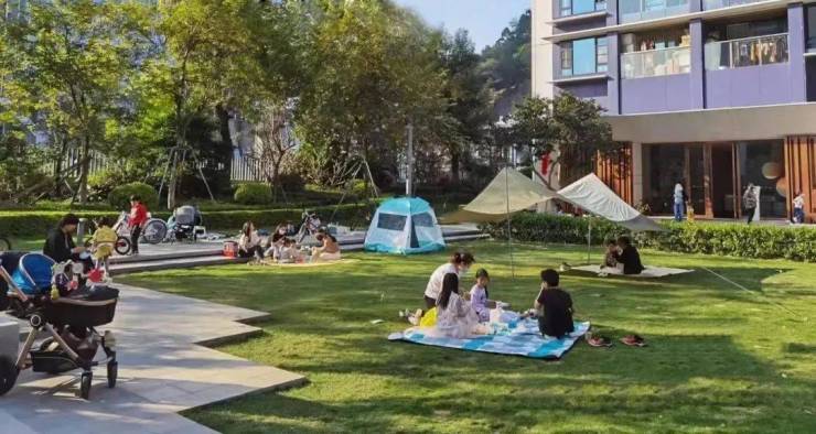 社区内倾力打造中央草坪,夏日吹拂过的傍晚,可以和老友新邻相约于此,在葱郁翠绿的芳草中,来一场别开生面的野餐,美食与落日相映成趣,欢声笑语此起彼伏。