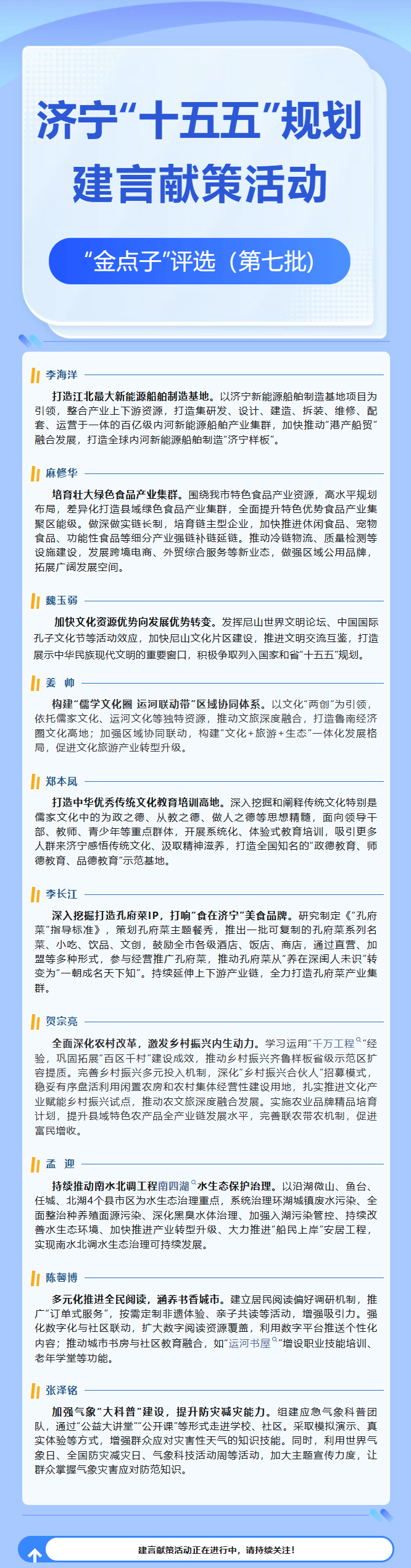 济宁市“十五五”规划建言献策活动第七批“金点子”发布