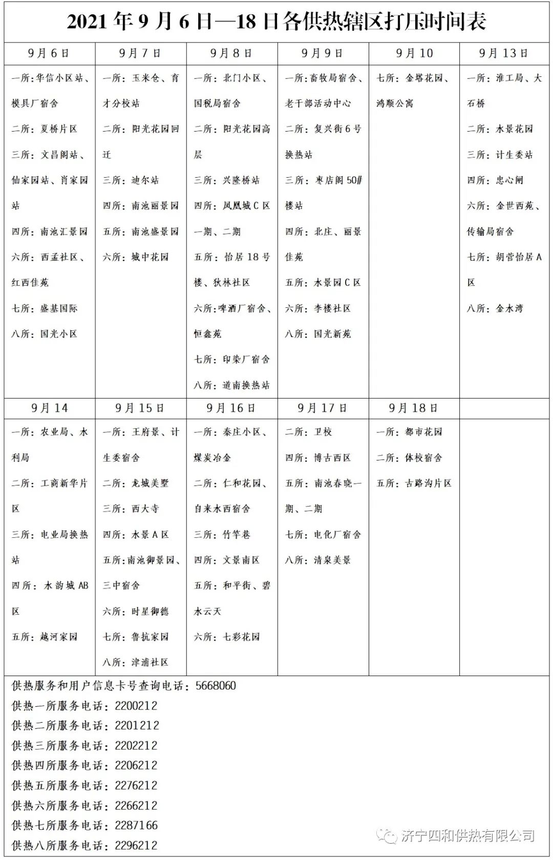 附:《9月6日—18日各供热辖区打压时间表》