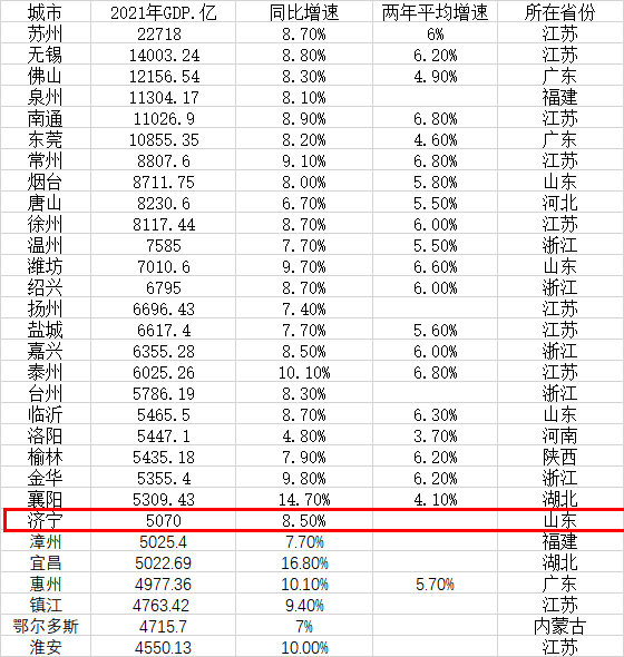 另一个低调的“实力选手”是济宁,其2021年GDP突破5000亿元大关、达到5070亿元。