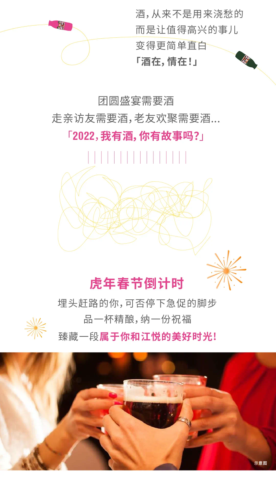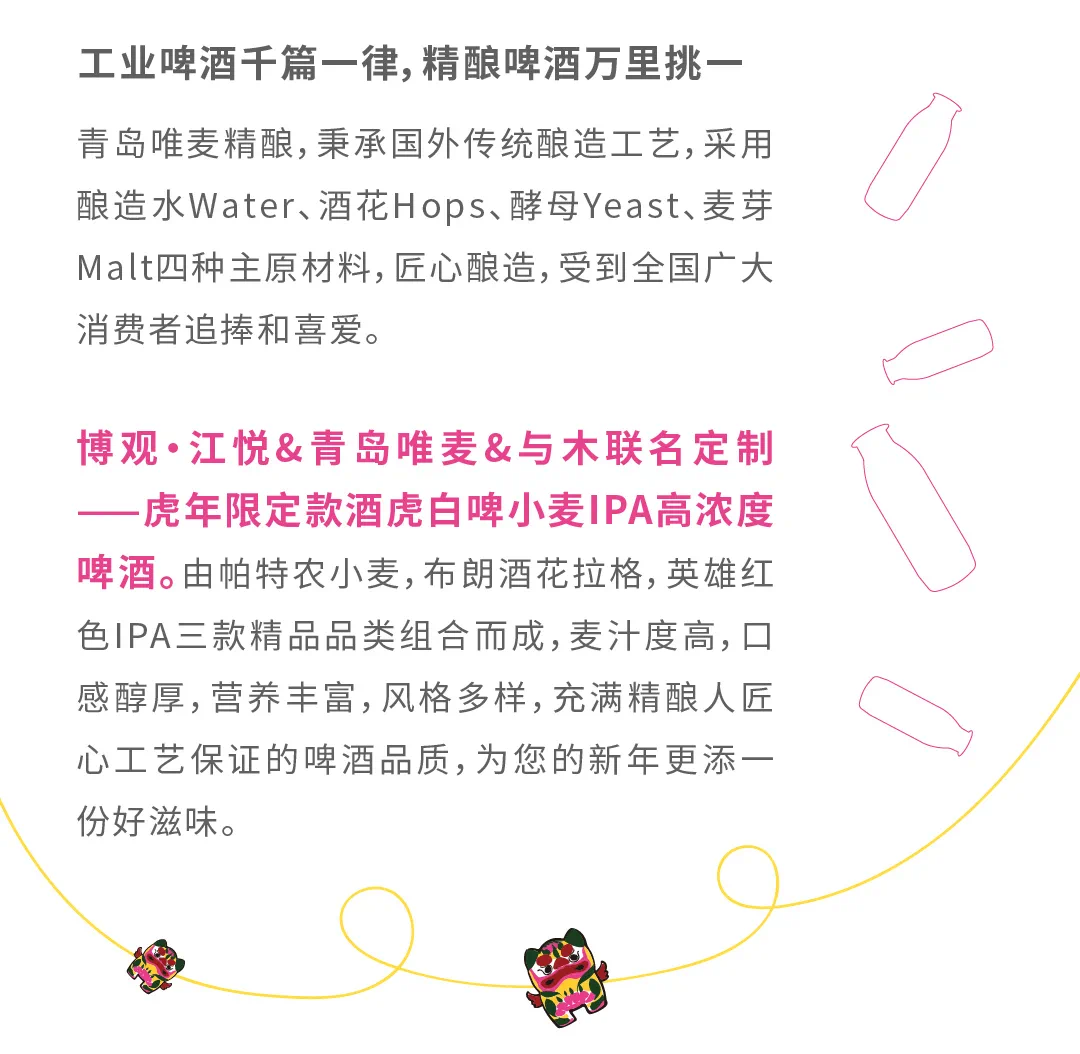 虎年喝虎酒,鸿运天天有。可否停下急促的脚步,品一杯精酿,纳一份祝福。臻藏一段属于你和博观·江悦的美好时光!