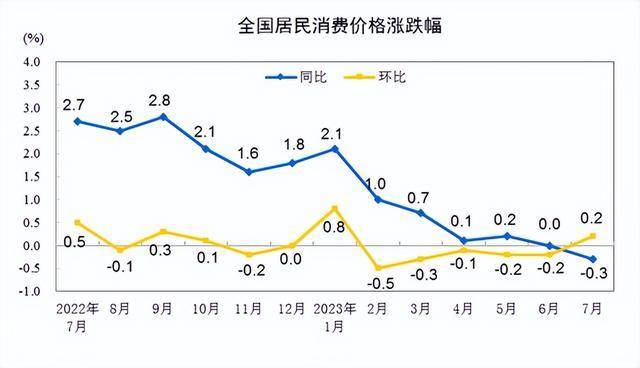 2023年7月份居民消费价格同比下降0.3%,环比上涨0.2%