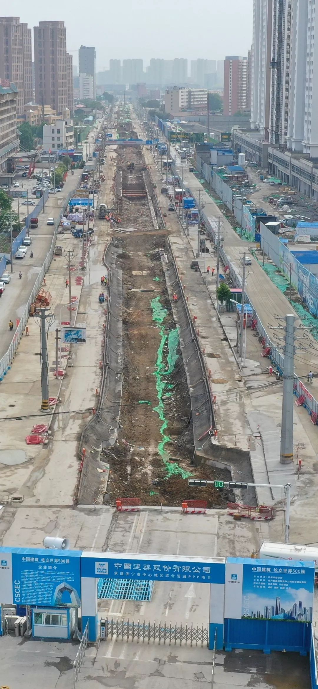 截至6月9日,完成济安桥路至老运河围挡4880m,围护桩2579根,占总数的90.6%,超出百日攻坚围护桩过半任务量的81.2%,同时完成强弱电管线迁改。