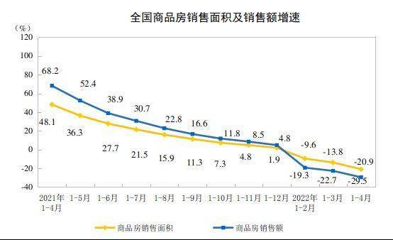 16日,国家统计局发布的数据显示,今年前四个月,全国商品房销售额同比下降29.5%,住宅销售面积同比下降25.4%。