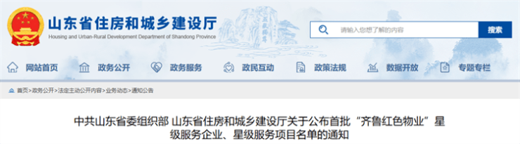 近日,中共山东省委组织部联合山东省住房和城乡建设厅公布了首批“齐鲁红色物业”星级服务企业、星级服务项目名单,认定30家物业服务企业为首批“齐鲁红色物业”星级服务企业,50个小区为首批“齐鲁红色物业”星级服务项目,济宁多家企业和多个项目榜上有名