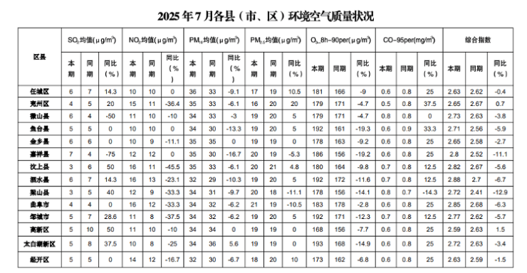 数据出炉!济宁市2025年7月份环境空气质量状况公布