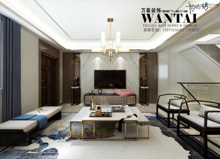 今日济宁路小七推荐的装修案例为-济宁龙玺香缇溪谷现代中式样板间别墅装修案例