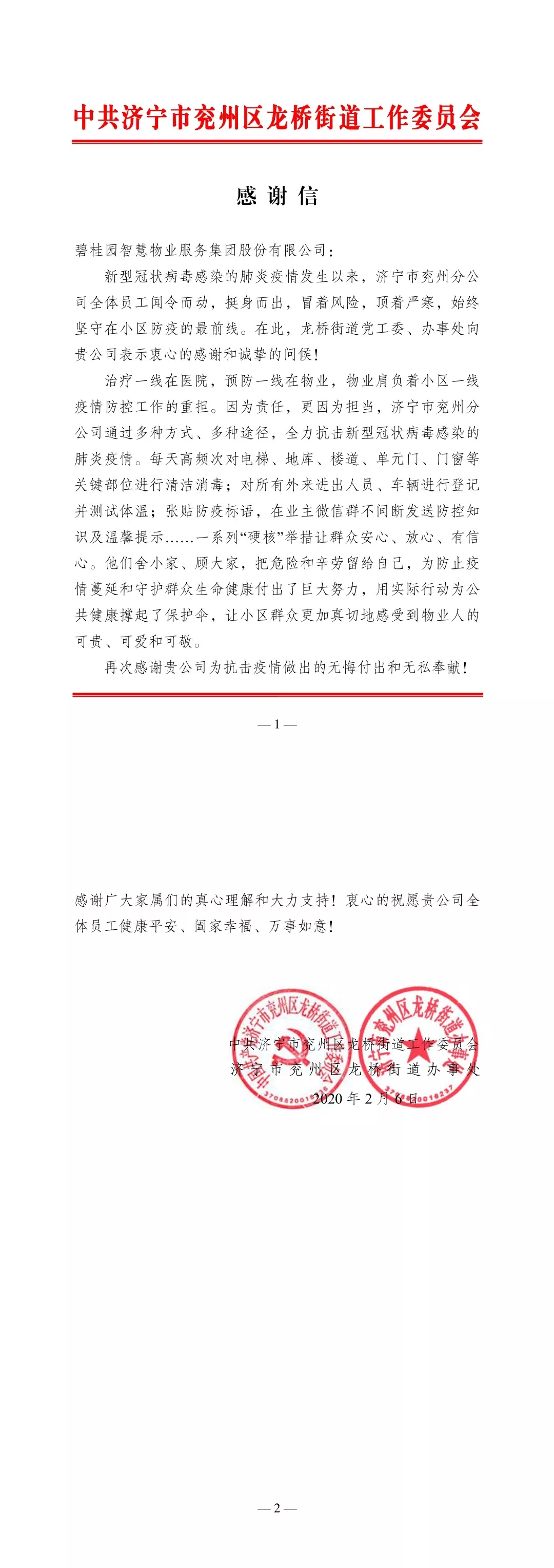 兖州碧桂园·翡翠湾正是因为有着互相关爱的业主与物业工作人员,才能让这次的疫情止步于翡翠湾门外,也正是可爱的业主才让我们的物业工作人员一直坚守在一线工作岗位上,翡翠湾全体物业人员在这次战“疫”中的表现得到了社区所在街道的高度认可和表彰,在今后的工作中,兖州碧桂园·翡翠湾全体工作人员将再接再厉,为我们翡翠湾业主站好每一班岗。