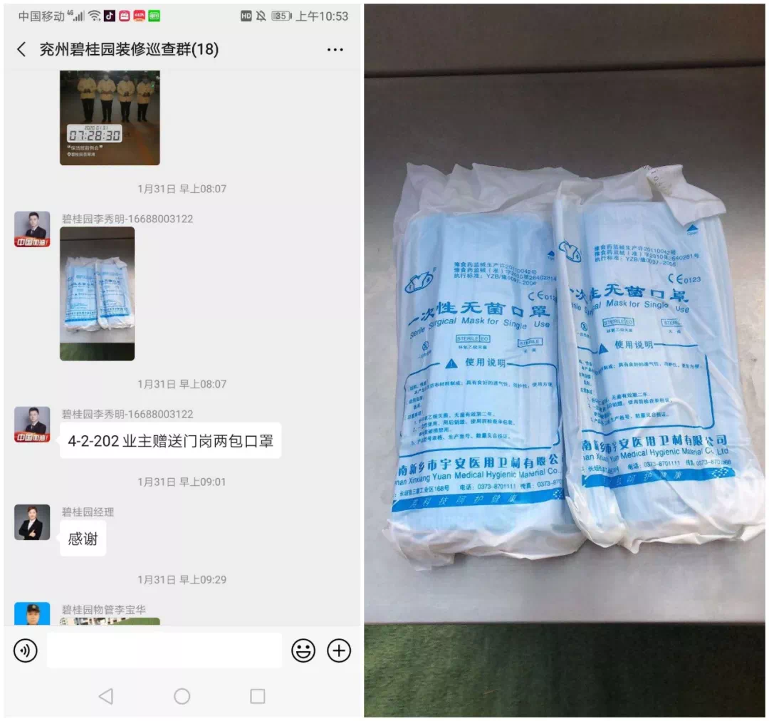 疫情无情人有情,在医务资源极度紧张的时刻业主们倾心相助,为我们送来了消毒液与口罩。“感谢你们为苑区和我们这些业主的付出,希望你们在保护好我们的同时,也保护好自己!”