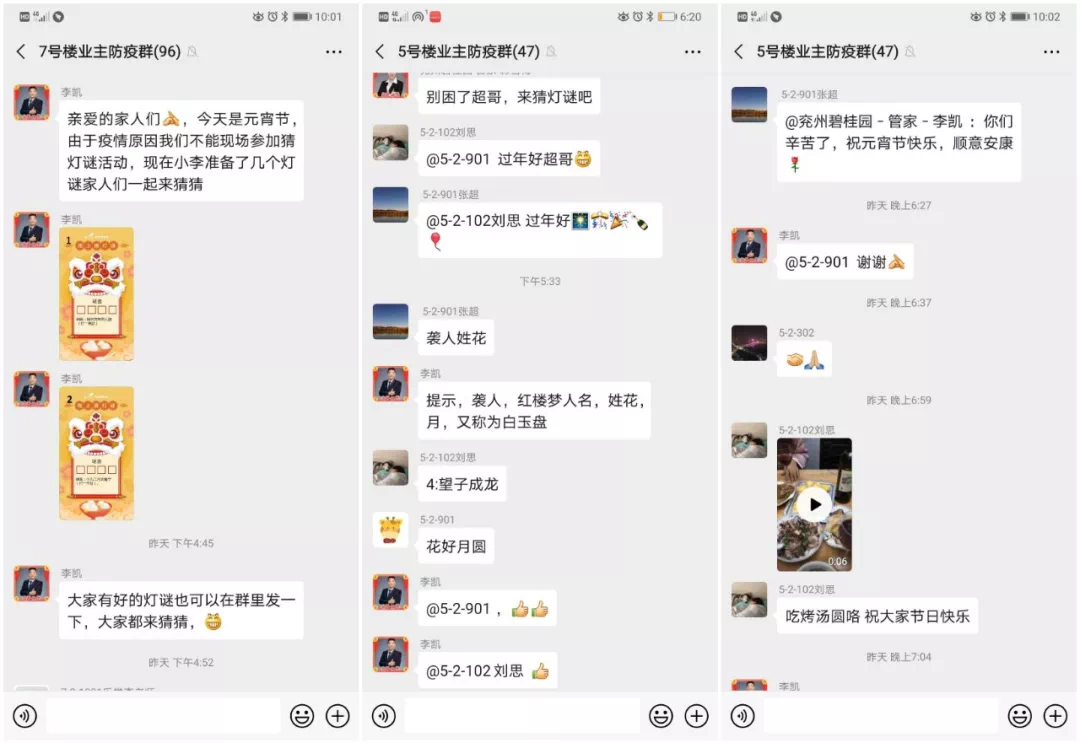 今年的元宵佳节,因这次疫情变得不寻常。然而环境的萧条并不能影响我们物业人员与业主对佳节的热情。“宅在家的美味”与“在线猜字谜”的活动,在业主们的支持中,火热进行。
