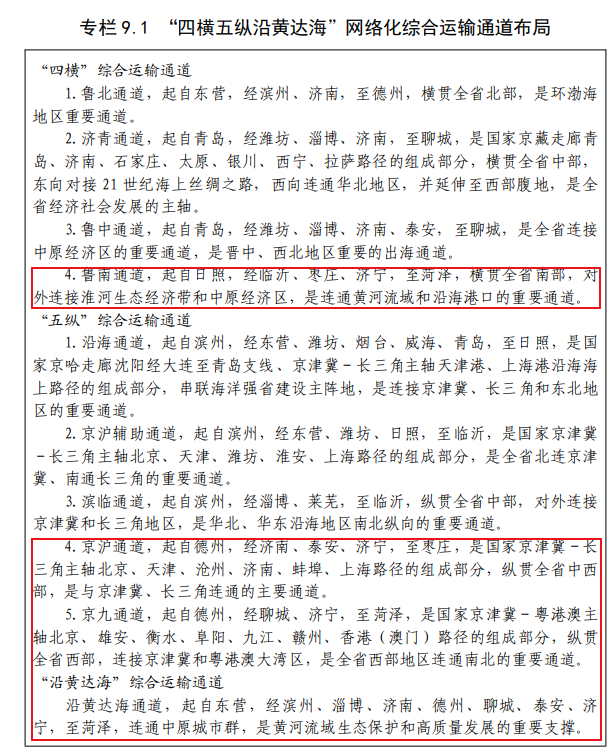 在完善综合立体交通网络上,以都市圈为重点,有序推进城际铁路、市域(郊)铁路规划和建设,高效连通中心城市、周边城市、新城新区,构建1小时通勤圈,规划布局“八纵六横”高速(城际)铁路网。济宁大安机场的启用,济宁港为主要港口的内河水运航道等,在完善综合立体交通网络方面也是重要的一环。