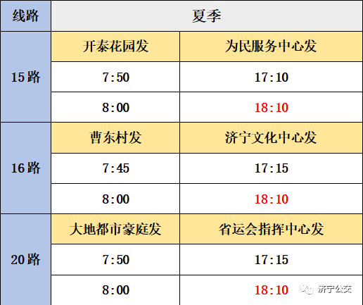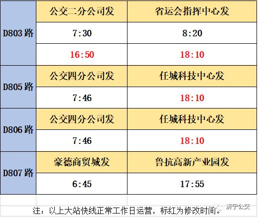 即日起,济宁城区部分大站快线调整夏季运营时间