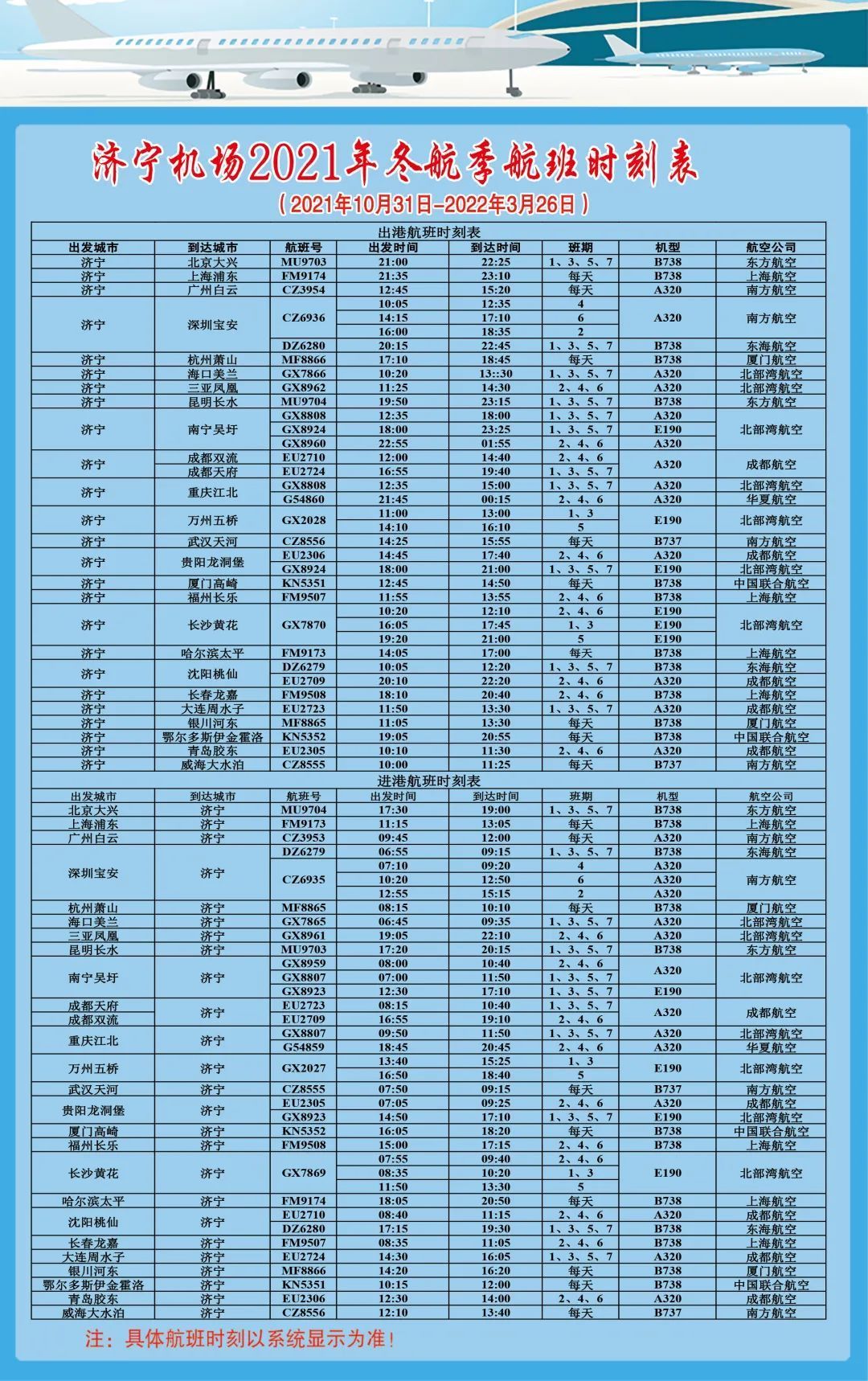 出行提示:航班将换季!济宁机场冬春季航班时刻表请收藏