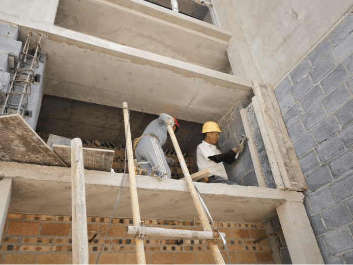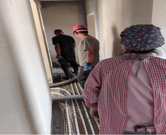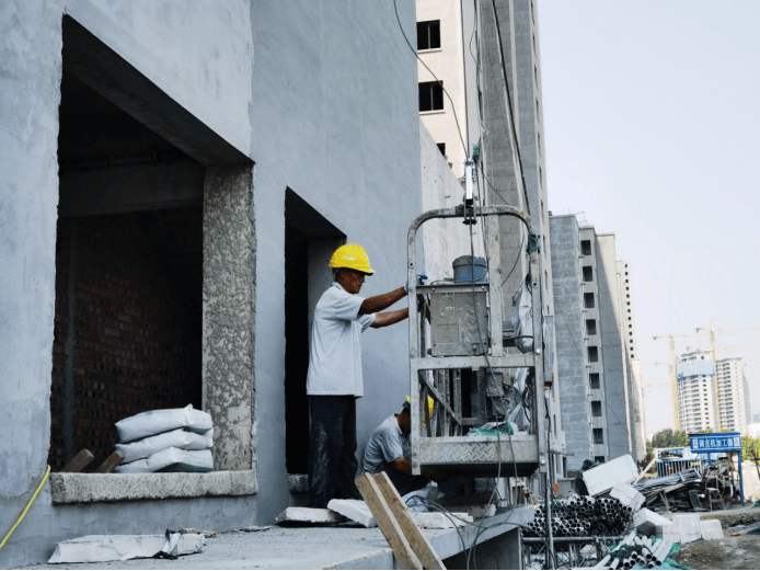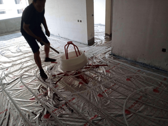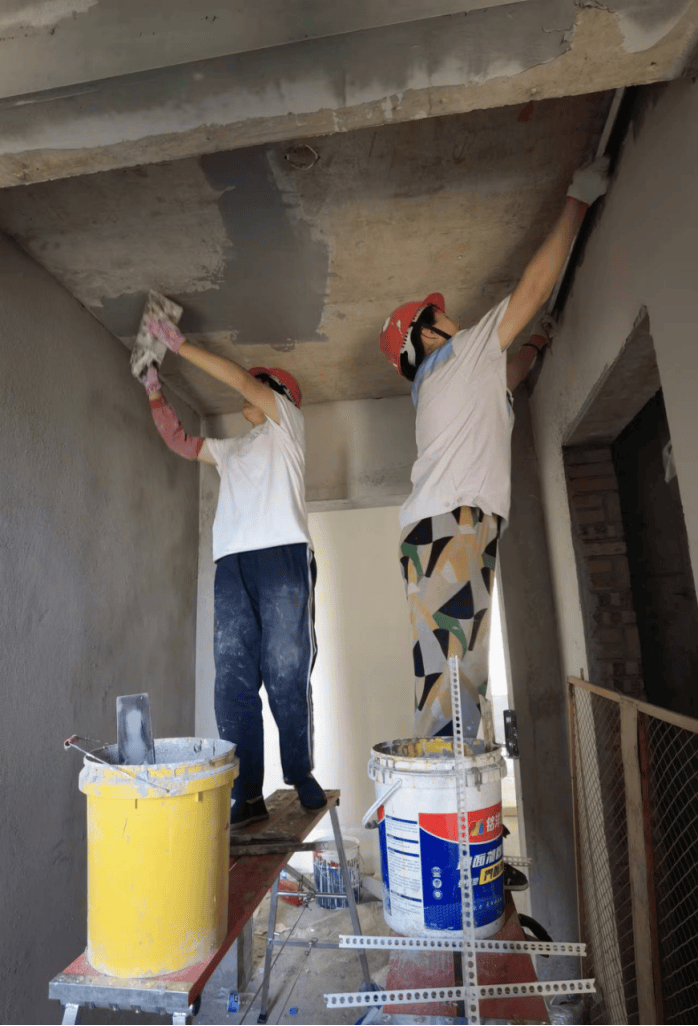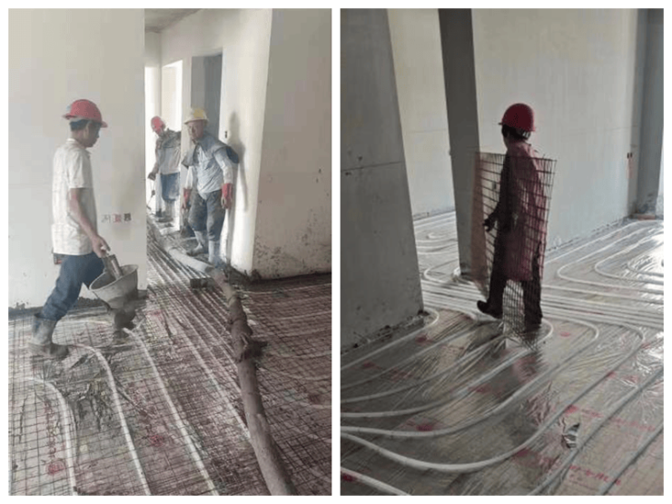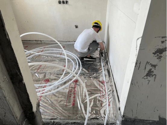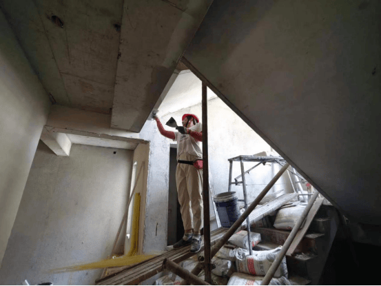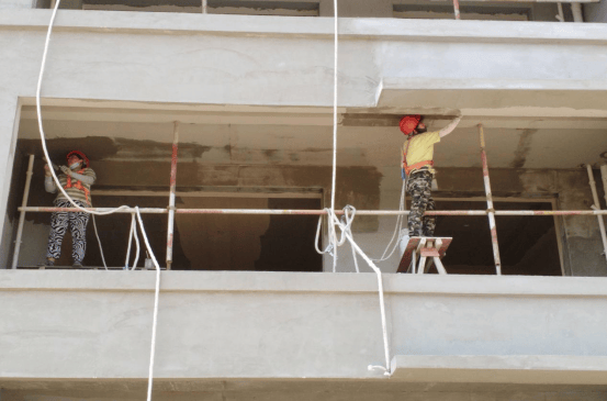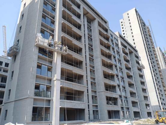 地暖地面完成,门窗安装完成50%,外墙漆完成20%。