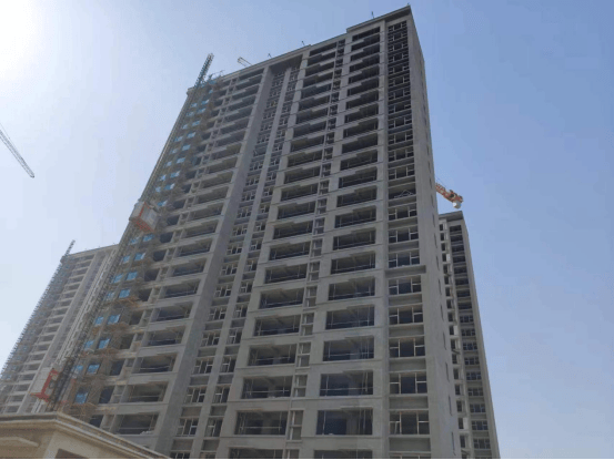 外墙抹灰已完工,外墙真石漆完成10%,地暖地面完成90%,给水分支安装完成,燃气立管安装完成,消防工程完成90%,门窗框安装完成。