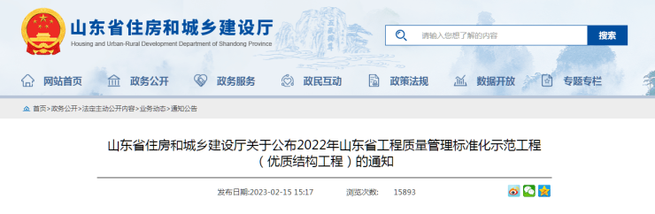 近日,搜狐网济宁小编从山东省住房城乡建设厅官网了解到,山东省住房城乡建设厅组织开展了2022年山东省工程质量管理标准化示范工程(原省优质结构工程)评价工作。济宁市京杭大数据产业园基础设施项目、济宁市公共卫生医疗中心建设项目EPC项目等17个项目获得山东省建设工程优质结构奖,获奖名单如下: