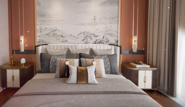汇涛·世纪风景的大平层,主卧房、衣帽间、主卫浴三合一,彼此相连。在保留三个空间独立感的同时,也保证了主人生活的私密性,将从容豁达的宽度延伸至每一处,升级生活质感。 以至臻的主卧配置,体恤精英阶层的生活需求,尊贵之余更显舒适 与贴心。