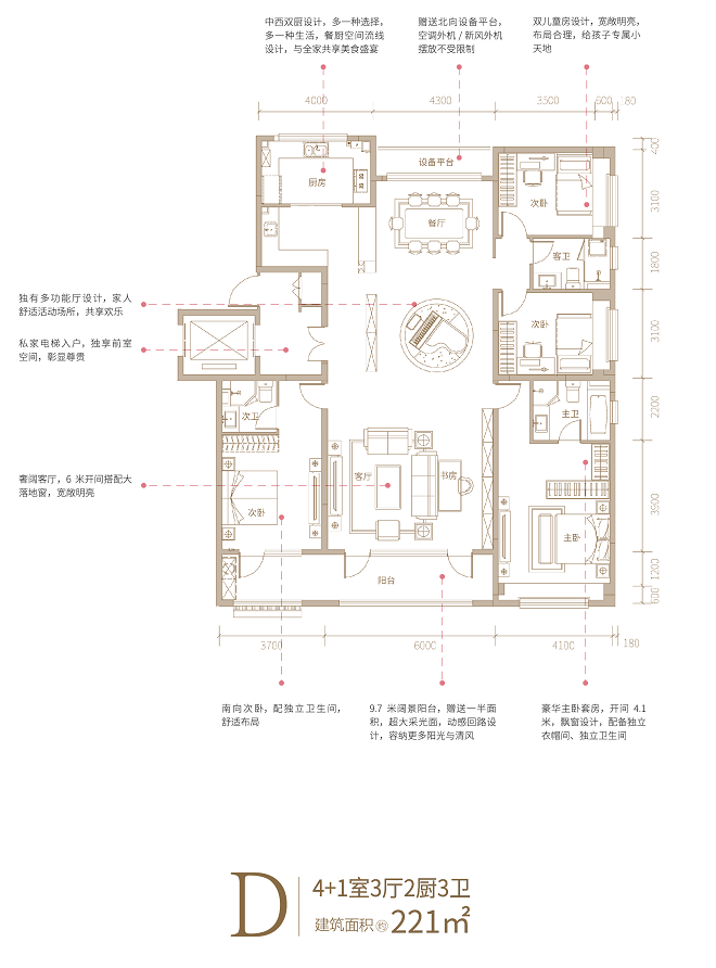 宽敞明亮的宽绰空间,足以实现对生活的一切梦想。大平层,从居者出发,生活细节之处,彰显品质和优越,让每一位家人尽享宽境人生。