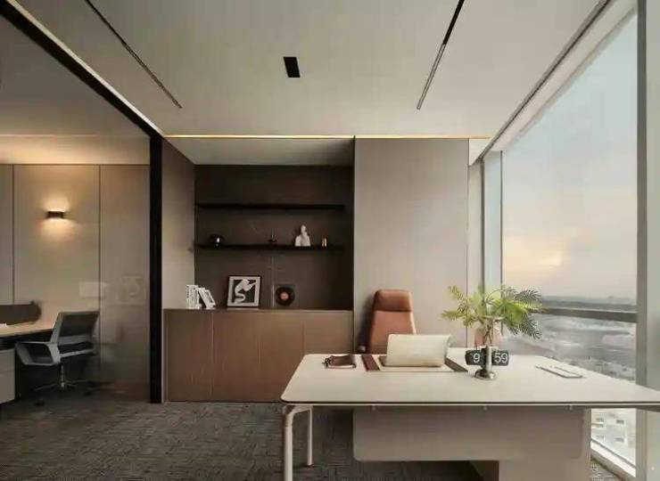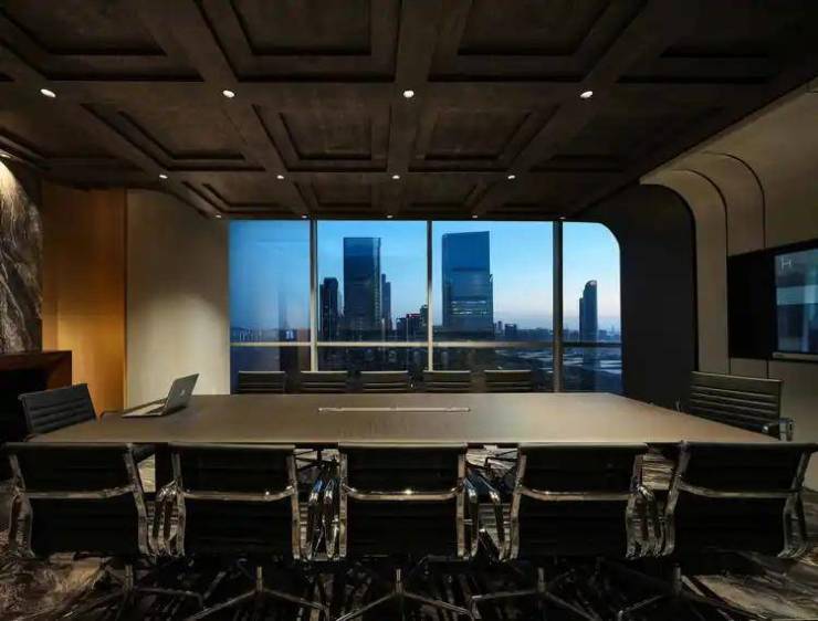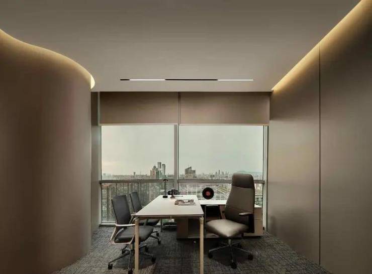 经理室靠窗布局,采用柔和灯带削弱办公的严肃感,在形、色、质的和鸣下润泽空间气度,协调情绪感官。
