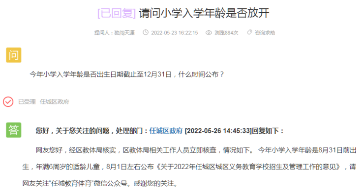 任城区2022年小学入学年龄是否放开?较新官方回复来了