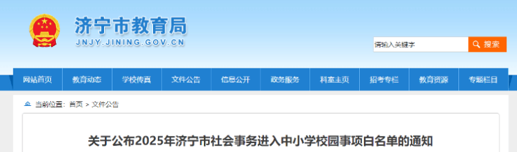 最新!2025年济宁市社会事务进入中小学校园事项白名单公布