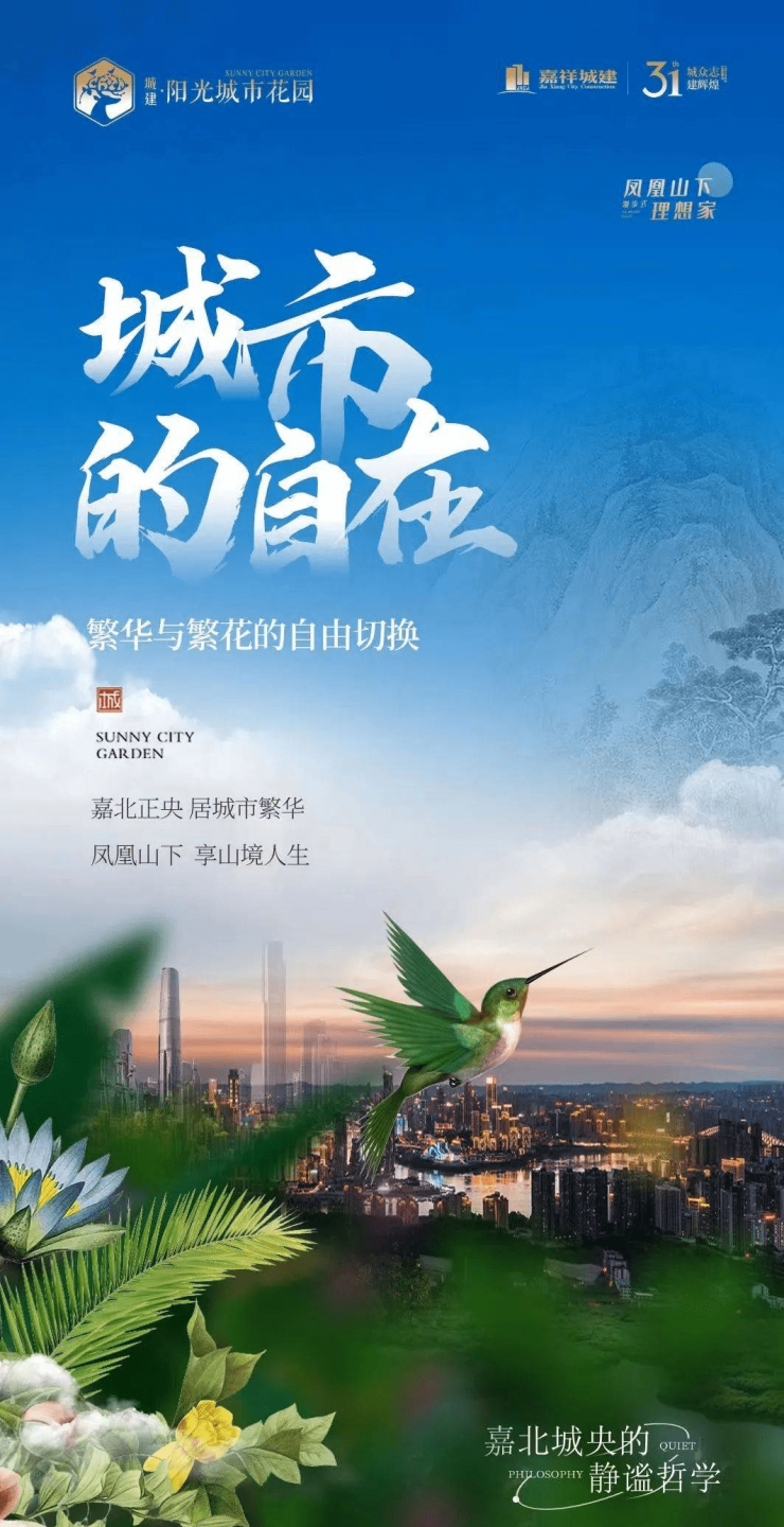 城市的自在,繁华与繁花的自由切换。阳光城市花园嘉北正央居城市繁华,凤凰山下享山境人生。4580元起/㎡,建筑面积约97-175㎡,嘉北正央,伴山时光。