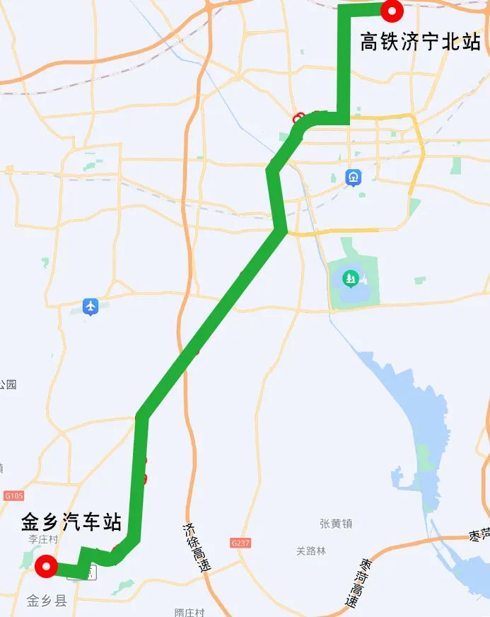 1.线路走向:金乡汽车站—诚信大道—山阳路—X038道—京澳线—任城大道—共青团北路—济北旅游大道—高铁济宁北站。