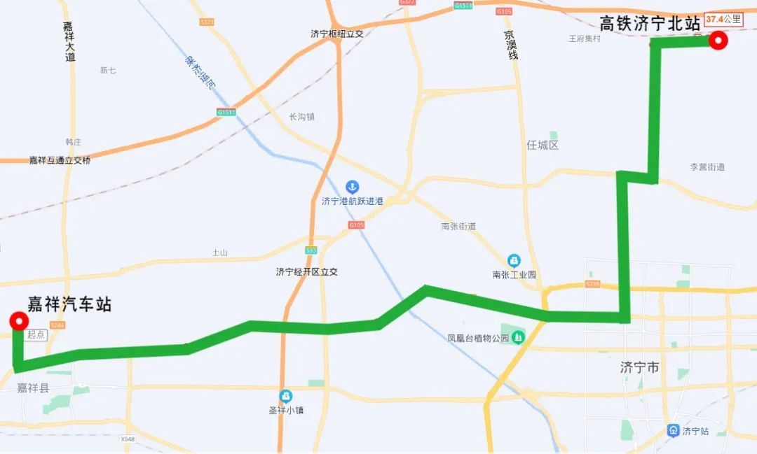 1.线路走向:嘉祥汽车站—建设路—S319省道—金宇路—济北旅游大道—高铁济宁北站。
