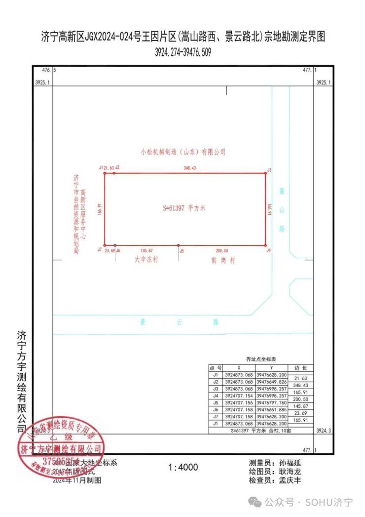 地块名:济宁高新区JGX2024-024号王因片区(嵩山路西、景云路北)宗地